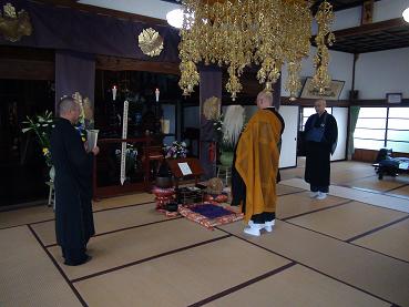新祥寺様本堂にて慰霊法要を皆で勤めました。 |