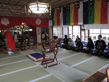 差定 三会上殿 七下鐘導師上殿 拈香法語 東日本大震災物故者精霊位牌開眼 (如來十號、開眼作法、洒水) 摩訶般若波羅蜜多心經 本尊上供回向 大悲心陀羅尼(讀經中參拜者燒香) 舎利禮文三返 総回向(回向中導師讀込あり) 散堂