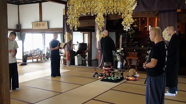 まず、前回及び今回のボランティアの受け入れのご縁を作っていただいた新祥寺様へご挨拶し、新祥寺様での慰霊供養を行いました。