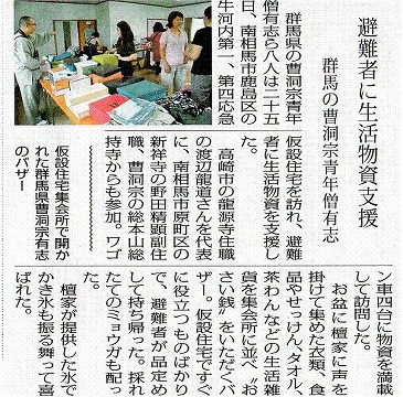 今回はフリーバザーという形で賽銭箱を用意し、志を入れていただくかたちを取りましたが、 『こんなに沢山いただいたのでは・・・』といい、一度仮設住宅に戻り、浄財を入れてくださる方もおられました。 また、多数の感謝の言葉をいただき、嬉しくも照れくさくもありました。