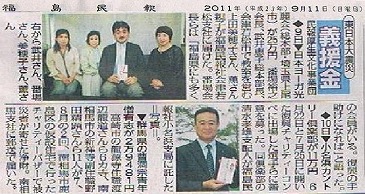 その後、南相馬市鹿島区の牛河内第一、第四応急仮設住宅区内の集会所にてボランティアバザーを行い、同時にかき氷を振舞いました。 また、福島民報(福島県最大の地方紙)の方の取材を受けることもございました。